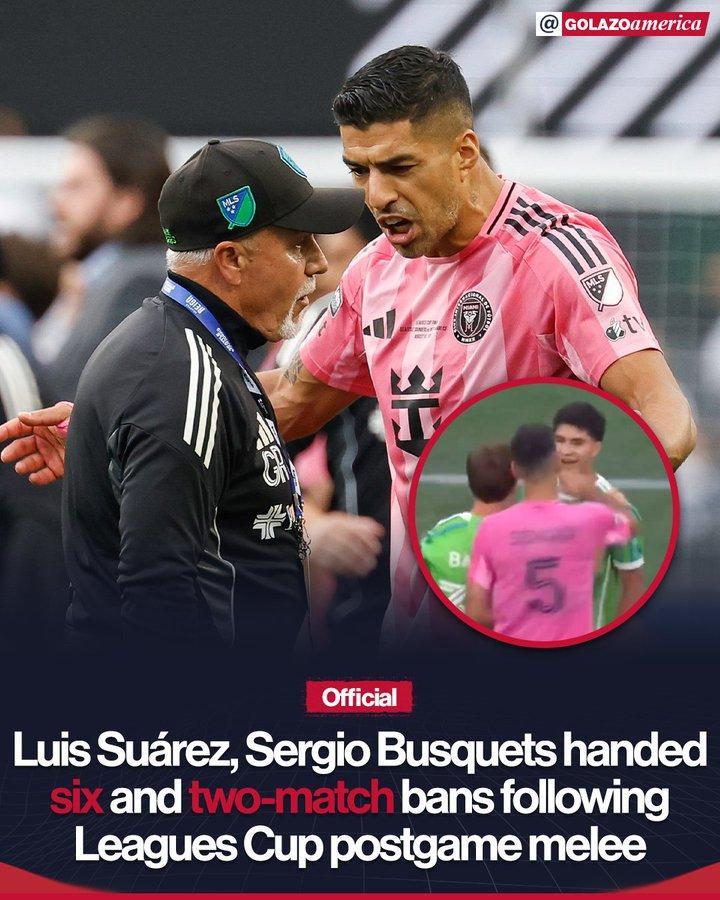 联盟杯决赛迈阿密国际0-3不敌西雅图海湾人,赛后双方发生冲突,苏亚雷斯向对方工作人员吐口水,布斯克茨则向对方中场巴尔加斯挥拳。